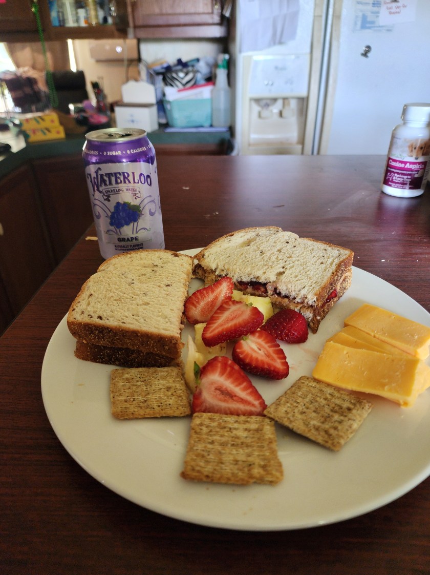 When I do sit down to eat, I always have my portion plate on hand. I have a stack of dinner plates in the cabinet that haven’t been used in forever. I know I should box them up, but I have not quite pulled the trigger on that yet. (Note to self: remove all plates bigger than dessert sized) . Having the portion plate right there keeps me focused on my portions and though there are days I do overdo it, most of the time I keep within those little portion sections. I have also found that after I serve my portions to my plate, if I put away any leftover food immediately, I will not return for seconds. If I don’t put it away, my chances of a return multiply.